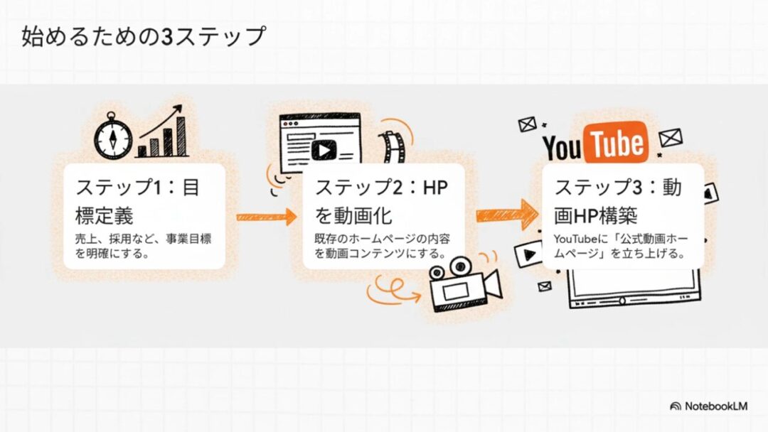 そして③YouTubeにアップしていって、あなたの公式動画ホームページを作る。