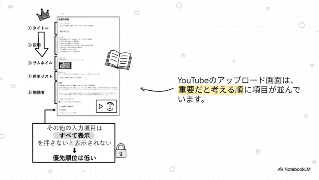 実は「YouTubeはこれを重要視してますよ」っていう順番に項目が並んでるんです😉👍