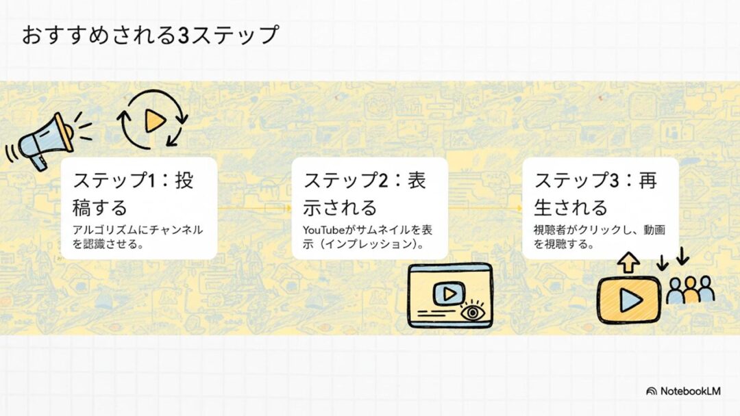 では、最初のステップから次のステップへ、つまりYouTubeのAIがあなたのチャンネルを認識して、