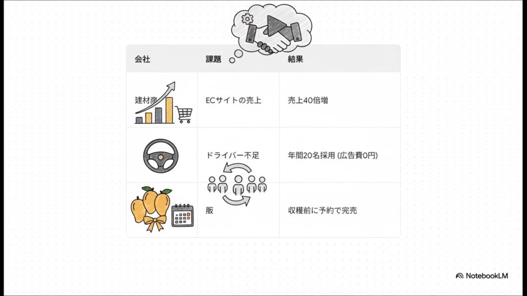 - 『実績:実際のビジネス成果(事例と数字で見る効果)』
