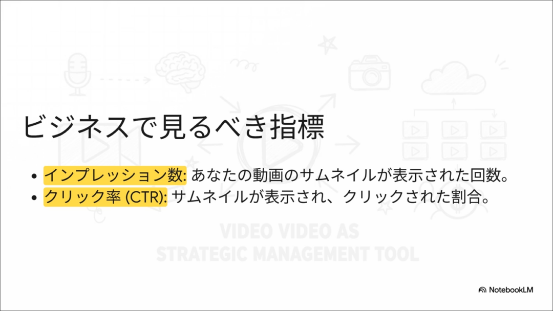 そのために見るべき指標は、再生回数みたいな派手な数字よりも、インプレッション数とクリック率☝️むしろこの2つの地味だけど本質的な数字なんです😌